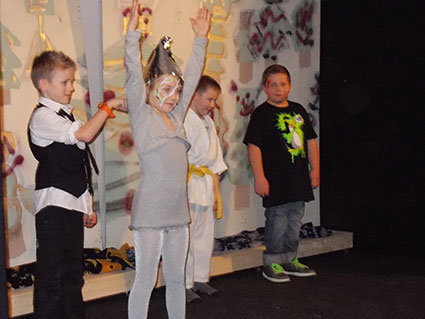Das Kinder- und Jugendtheater war mit neun Kindern zwischen 7 und 12 Jahren zu Gast bei uns in der Kulisse. Dort hatten sie mit ihrem selbst ausgedachten Stück Premiere. Die Zuschauer waren begeistert.